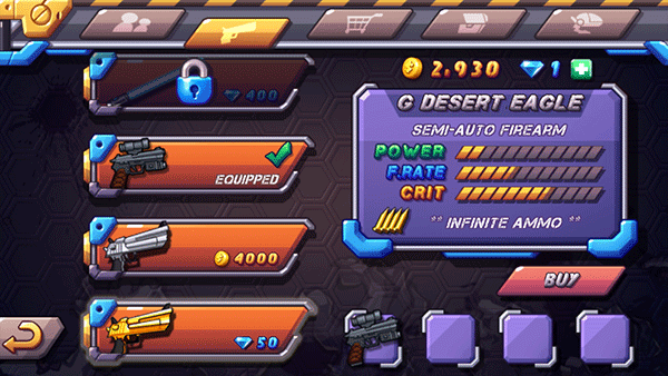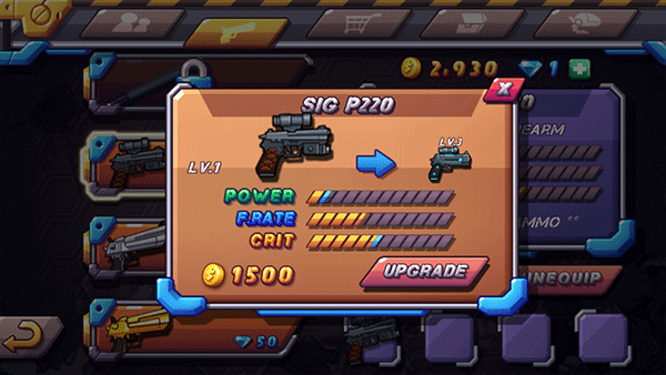 2、您可以升级武器并购买新武器。您还可以购买特殊物品、道具和机甲设备;