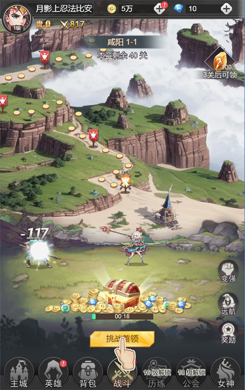 5、挑战成功后,可获得丰富的金币、经验、药水、钻石等奖励,同时可以挑战新关卡,