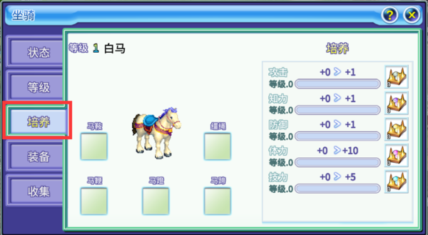 有机率暴击增加额外经验值,培养数值的等级上限为座骑的等级
