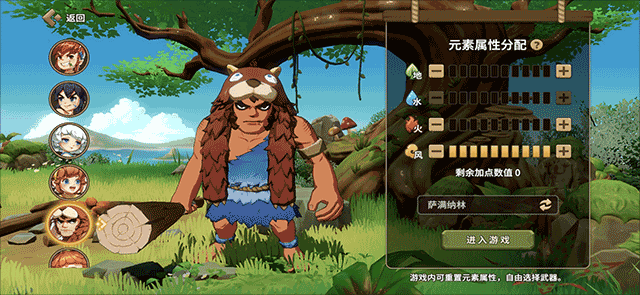 3、这里玩家可以在六个不同属性的人物中选择一位参加接下来的冒险;