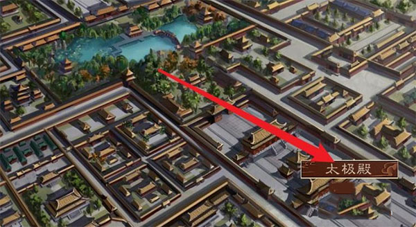 2、进入剧情后,打开左下角的地图,找到太极殿并打开;