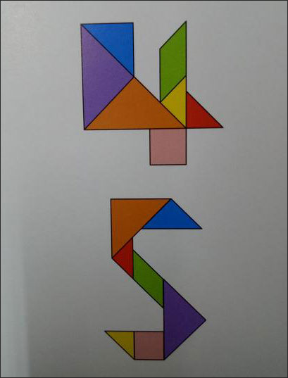 磁性七巧板:拼完了图形,来一个进阶的训练,试一试拼出小动物吧。