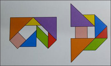 2、可拼成许多图形,如三角形、平行四边形、不规则多边形。