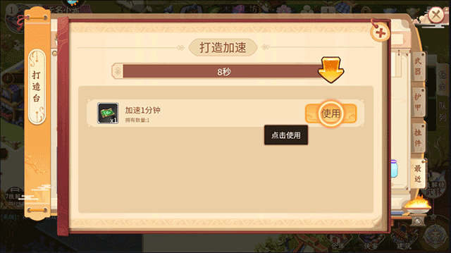 8、接下来,在打造加速中找到并点击“使用”选项;