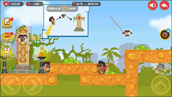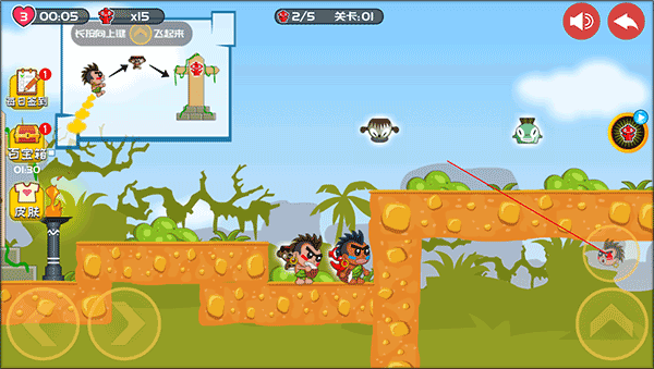 1、下载安装好屁王兄弟双人版,进入游戏,长按如图所示的键可以让角色飞起来。