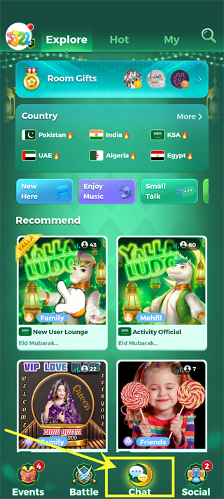 8、玩家还可以随时在Chat页面与来自世界各地的玩家进行交流,以上就是Yalla Ludo官方版的玩法了。
