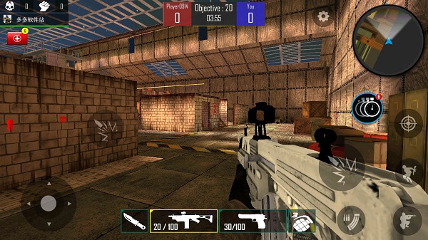 游戏中地图不多,其中厂房地图视野比较好,有楼梯可以控制制高点,但是对于不停移动的对手,不容易命中。可以躲在对手出生地的墙角,拦截复活不久的对手。对手所有人都会有红色标记显示出来,角色能够知道对手的行踪,轻松搞定他们。