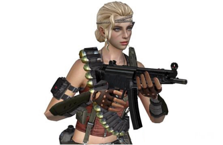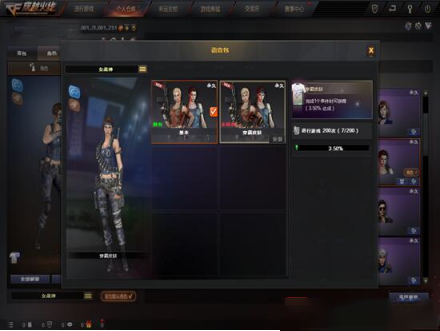 另外女战神还是游戏中首个拥有皮肤系统的功能型角色,在角色属性设置按钮旁边多了一个衣服按钮,点开之后会弹出女战神的皮肤系统。如上图所示,目前只有一个皮肤,点击穿戴之后,女战神头上多了个发带,并且身上挂满了子弹匣,明显已经进入作战状态,游戏200次便可以获得女战神的这款新皮肤。