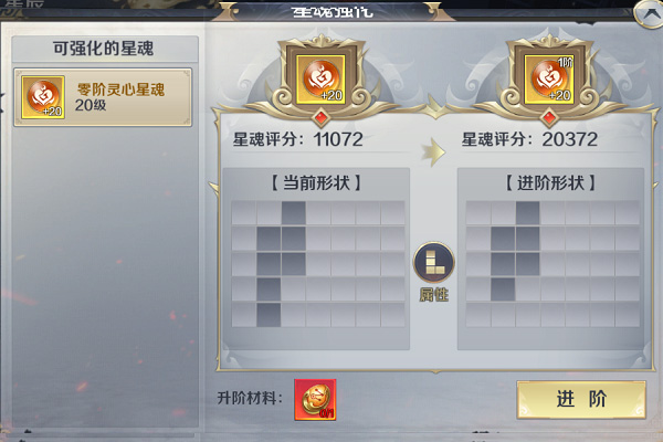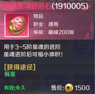 升阶需要星魂进阶石,可以通过遗忘战谷掉落和摘星获取