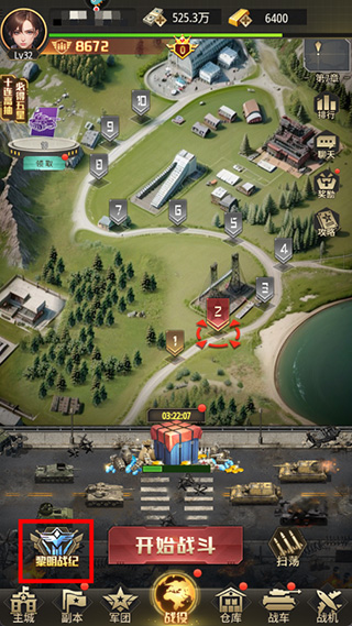 1、进入首页,点击战役中的“黎明战纪”。