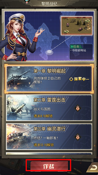 2、选择要攻打的章节进行作战,每一个章节都有故事背景。