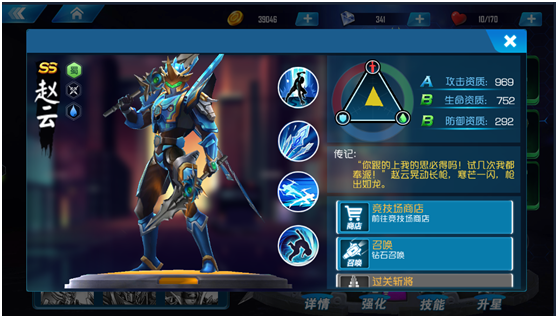 赵云本身初始为ss英雄,三围资质都是比s英雄要高的,培养到越是后期,三围越高。同时赵云的技能非常实用,不得不说的就是被动技能,直接闪现到敌人的身后,要知道背击敌人是有伤害加成的,配合赵云本身技能的多段高攻击,伤害绝对爆炸!同时这个出场技能也方便我们通过一些需要打出背击的关卡。