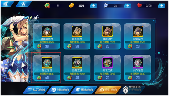 另外在过关斩将第10关以及五行副本的水属性副本都有概率获得赵云碎片,最稳定获取碎片的地方还是竞技商店。