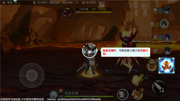 5、左边控制角色方向,右边功能键,玩家可以自行开启对战,当能量满值时,玩家可以点击充能大招;