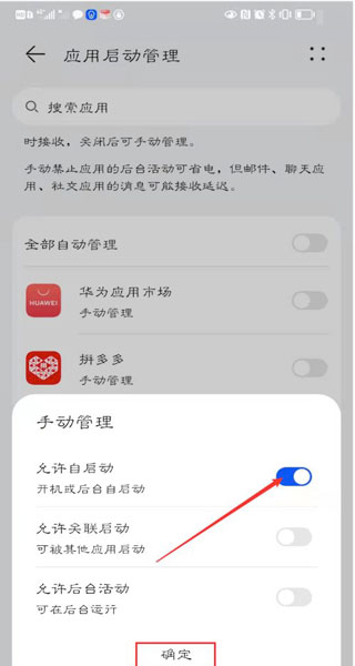 5、手动管理,点击允许自启动即可。