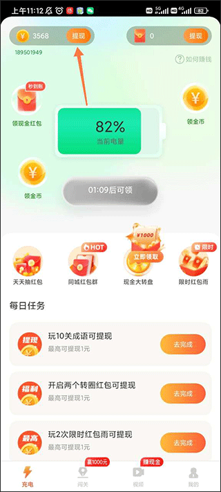 ps:得先和自己微信绑定1、进入充电我特牛,点击金币旁边的提现