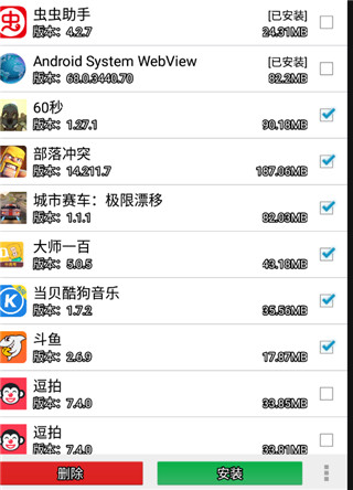 极速全盘扫描SD卡里的APK安装包;可批量删除、安装APK安装包;