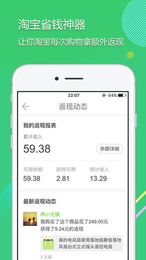通过拾惠街应用,让你在淘宝的每一次购物都能拿到返现。