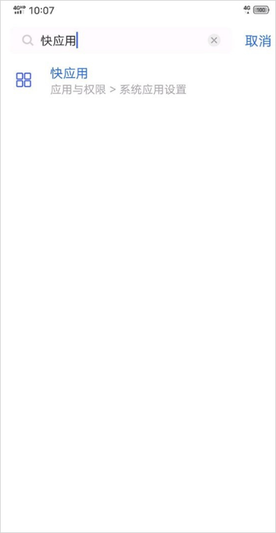 1、进入手机设置,在搜索框中输入“快应用”。