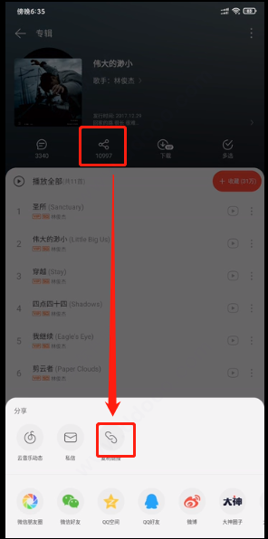 QQ音乐分享专辑,选择复制链接粘贴到app搜索框即可