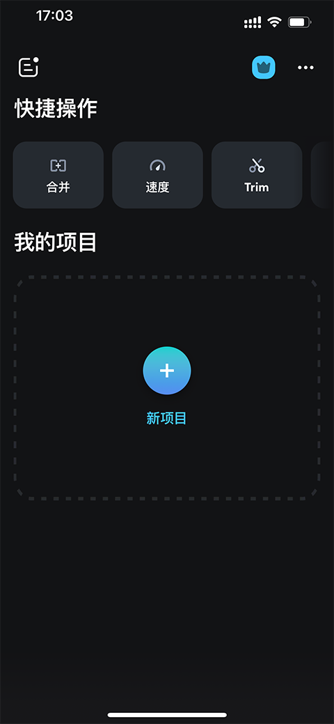 1、在splice视频编辑软件中选择“+”创建新的项目。