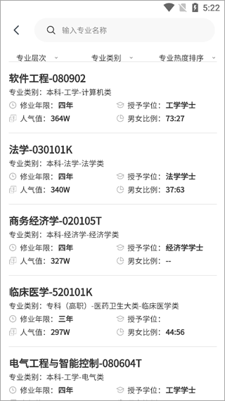 4、点击查专业,可查找心仪专业,点击了解专业详细介绍和近三年就业率情况。