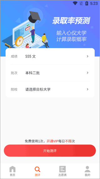 1、下载安装好高考志愿之家官方版,打开app,选择对应地区和文理科目,进入首页。