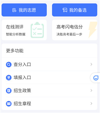 2、点击志愿功能栏,我们除了可以模拟填报志愿外还有查分数、填报、招生章程等等功能