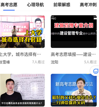 3、点击课程我们可以看到有高考志愿、心理导航、前辈解惑、高考冲刺等等课程视频可以观看