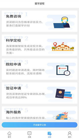 1、留学流程透明化、公开化,学员清晰知道出国留学步骤,让留学更简单。2、服务透明公开化,专属顾问服务学生,全程监控。