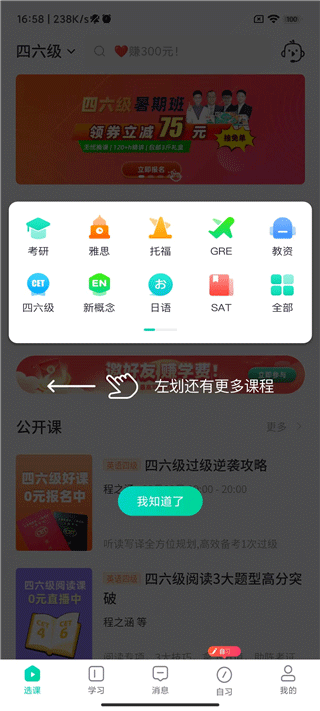 该软件为学生们提供SAT和日语、考验、四六级等全类型的英语线上课堂,聚了官方课程,每门课程都有名师在线讲解,用户可以选择直播课程以及公开课,值得一提的是,这里创建了小班授课模式,用户可以在线报班与其他人在线实时学习互动,有利于提升自我备考的效率。