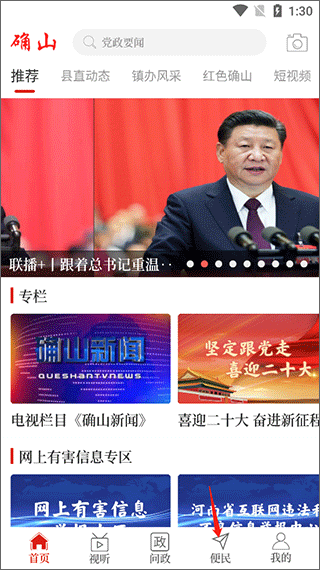 云山确山app是一款给确山人民提供最新的新闻资讯和便民服务的新媒体服务软件,也是由确山广播电视台落实中央关于推动传统媒体与新兴媒体融合发展的指导意见,整合了优势媒体资源,秉承媒体融合、移动优先理念,由河南大象融媒体技术有限公司设计研发的移动视听的新闻矩阵平台。