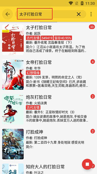 3、你也可以输入关键词搜索心仪的小说,如:太子打脸日常;