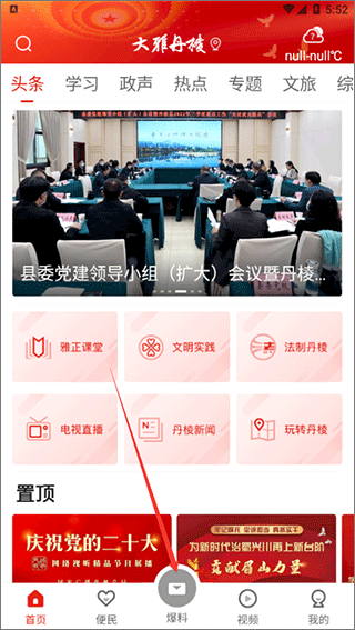 2、成功登录账号后,在下方的栏目中选择“爆料”功能进入;