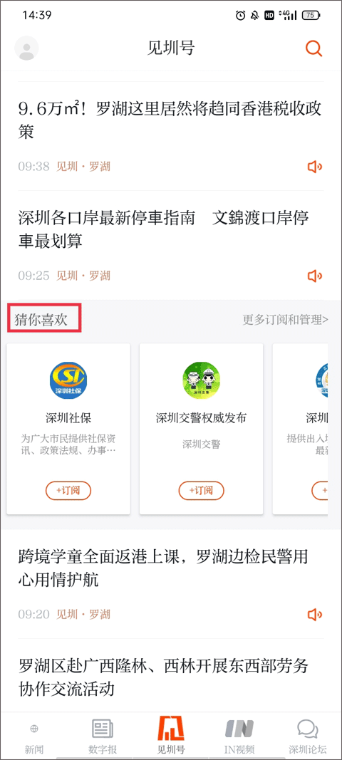 2、选择你想要订阅的见圳号之后,你可以点击订阅号的详情页面,这里会有很多它发布的各种实时新闻;