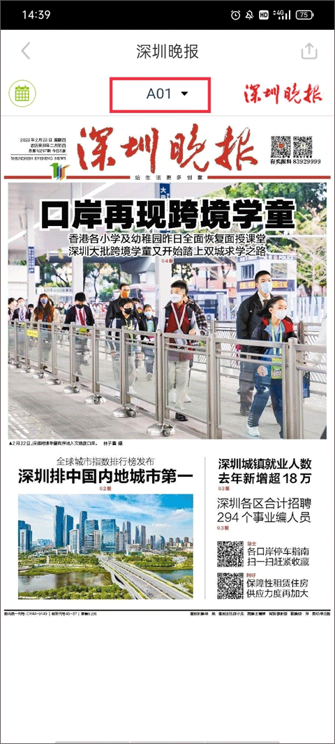 2、进入到数字报的详情页面,通过左右滑动屏幕的方式来不同期刊的晚报;