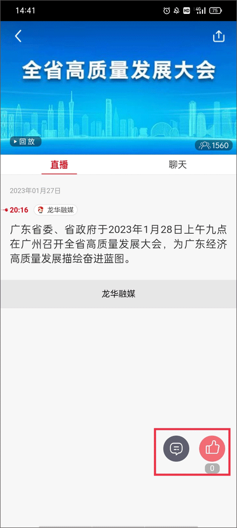 2、选择好后进入视频播放界面,你可以在聊天框中跟其他人进行讨论、点赞等操作。