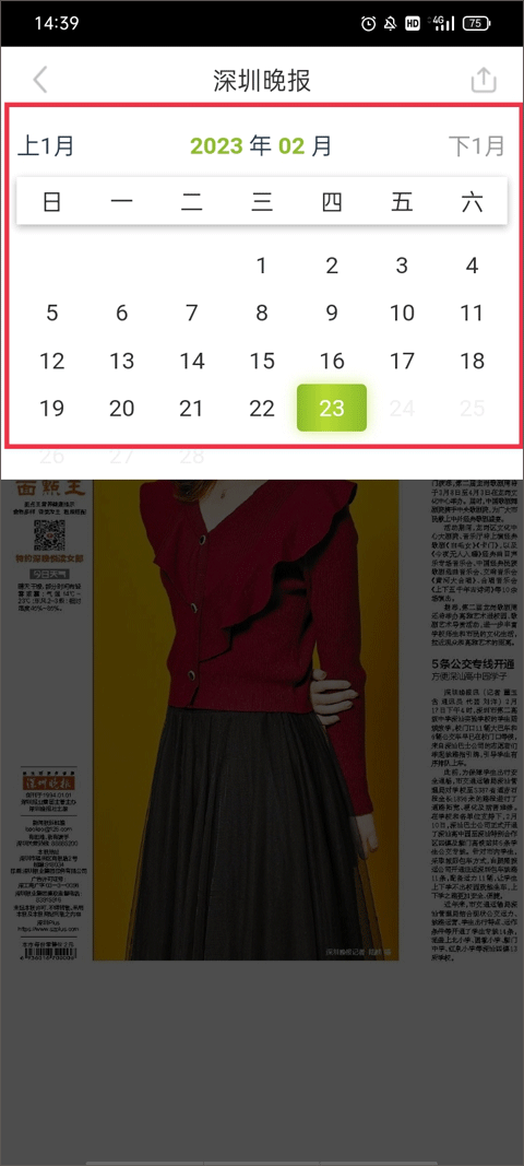 4、你还可以点击左边的日历表图标,根据日期来阅读不同时间段的数字报。