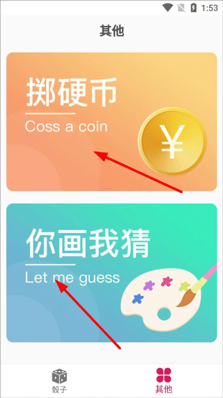 2、打开其他页面,有掷硬币和你画我猜小游戏;