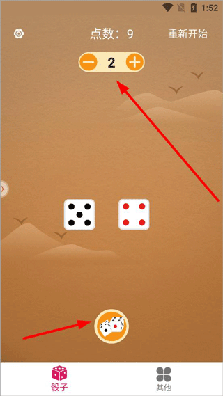 1、打开小羊聚会小游戏,主页可以扔骰子,点击点数可以增加骰子数量;