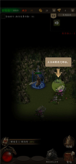 7、除了点击地图移动,还可以选择移动摇杆控制移动;