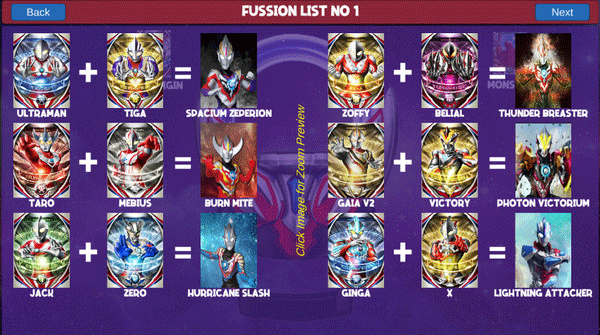 3、点击右侧的奥特融合卡牌,玩家可以任意选一张自己喜欢的奥特曼,卡牌可以互相配合,都会触发不同的技能组合特效~