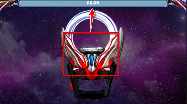 1、进到游戏内,多次点击变身器可以发出特殊的dx on音效,即成功开启欧布圆环。