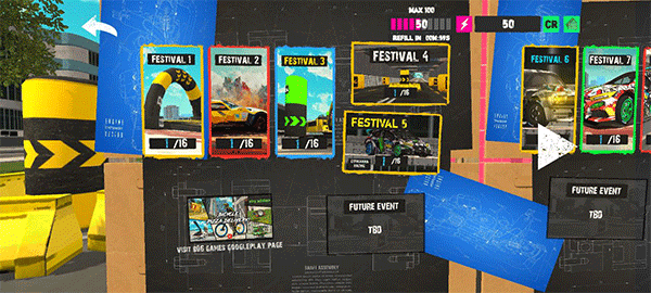 4、游戏内海量不同的游戏挑战关卡,每个关卡都一个全新的挑战,开启你的狂飙之旅;