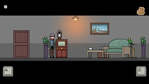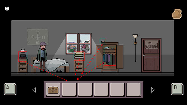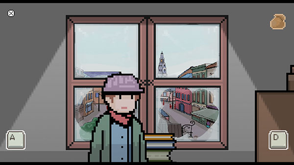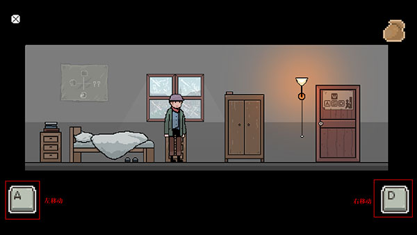 操作方面看起来也不复杂,用A和D键移动,点击物品触发对话,还能查看背包和窗外的景色,感觉像在玩一个小冒险游戏。画面是像素风,很有复古感,而且场景设计得很精致,像是一个真实的小镇。