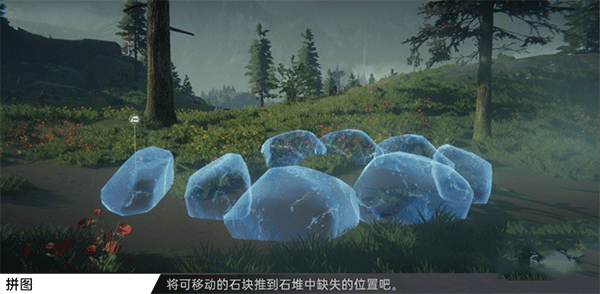 5、拼图:将可移动的石块推到石堆中缺失的位置