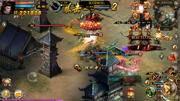 5、帮会歼灭战限时45分钟,双方帮会对战,无小怪,拆塔打祭坛,注意兵车调配,注意歼灭战中帅旗的使用(用于回血),可拔旗插旗。