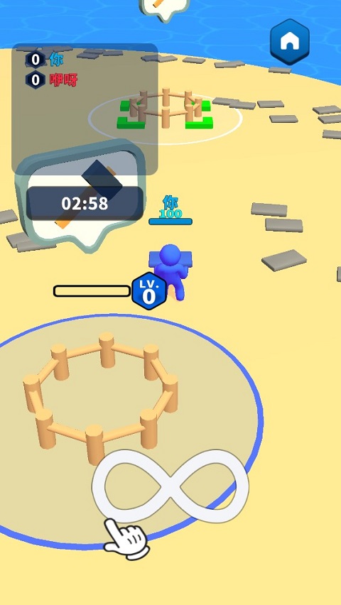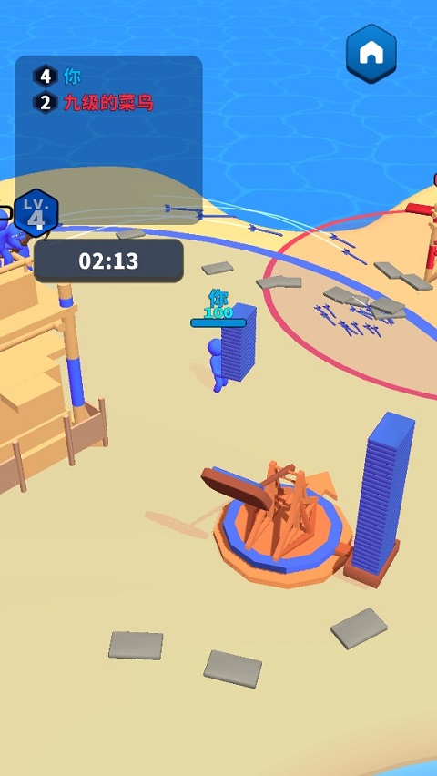 3、不断的收集木块,并建造更高级的建筑,利用建筑优势,击败对手。