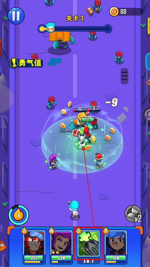7、如果英雄血量不足时,可以将治疗塔拖动至英雄旁边,在战斗时能够帮助治疗恢复血量;