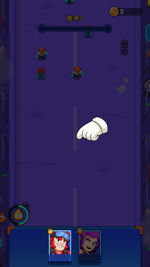 1、进入游戏,将角色拖动到战场上对抗僵尸;